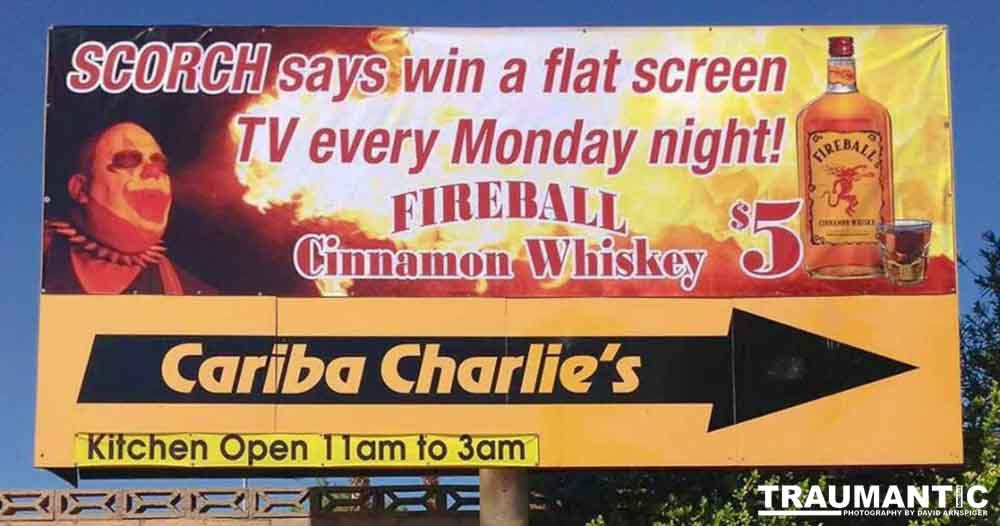 My buddy Warren Ross used on of my pictures to help promote a business in Las Vegas called Cariba Charlie's. The Billboard was rather prominent on Flamingo Boulevard. There were three versions over time featuring my images. I am very proud of the fact that they were there. (20130705-ScorchFireballAd-1026)