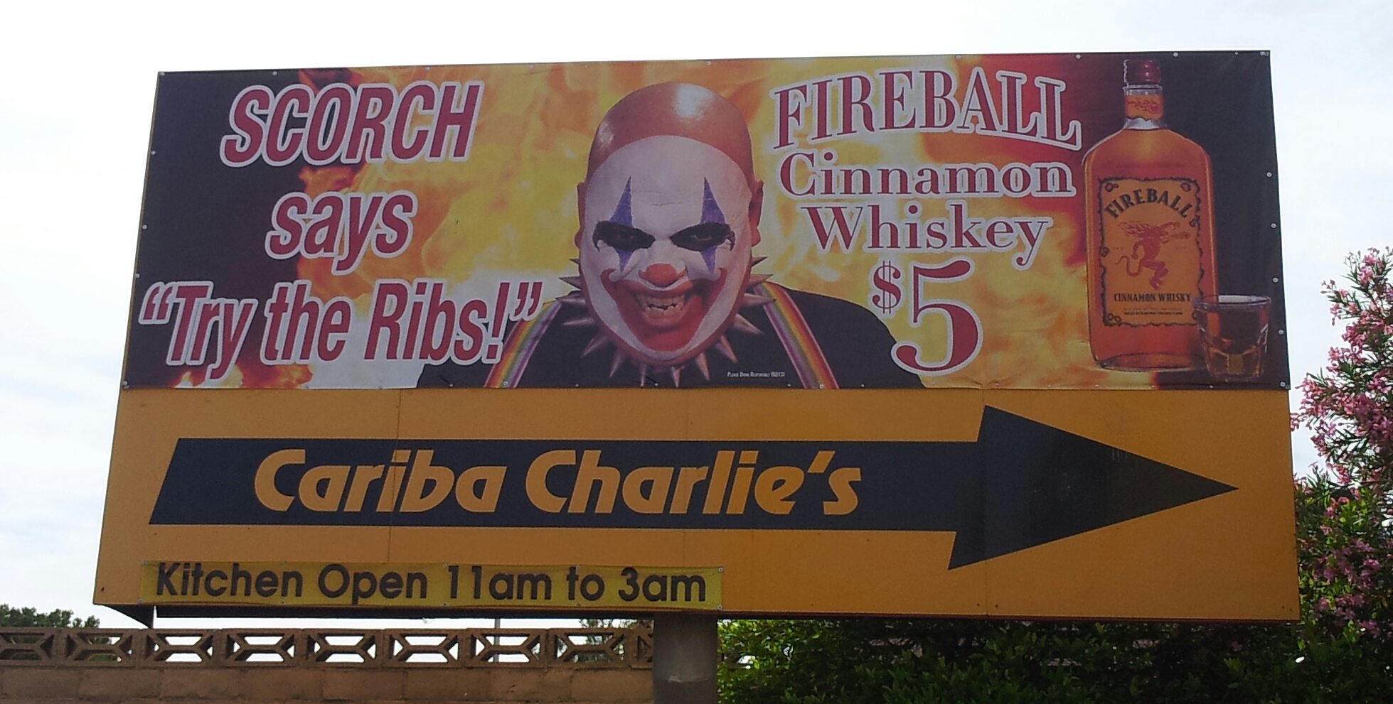 My buddy Warren Ross used on of my pictures to help promote a business in Las Vegas called Cariba Charlie's. The Billboard was rather prominent on Flamingo Boulevard. There were three versions over time featuring my images. I am very proud of the fact that they were there. (20130705-ScorchFireballAd-1030a)