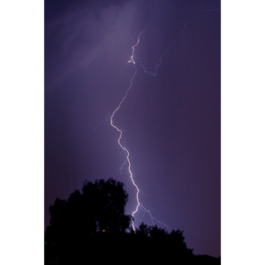 I set up in the yard with my 70 to 200mm lens. I work with exposures from 30 seconds to 1 minute. The long exposures help to ensure that I capture all the neat little tendrils coming off of the main bolt of lightning.